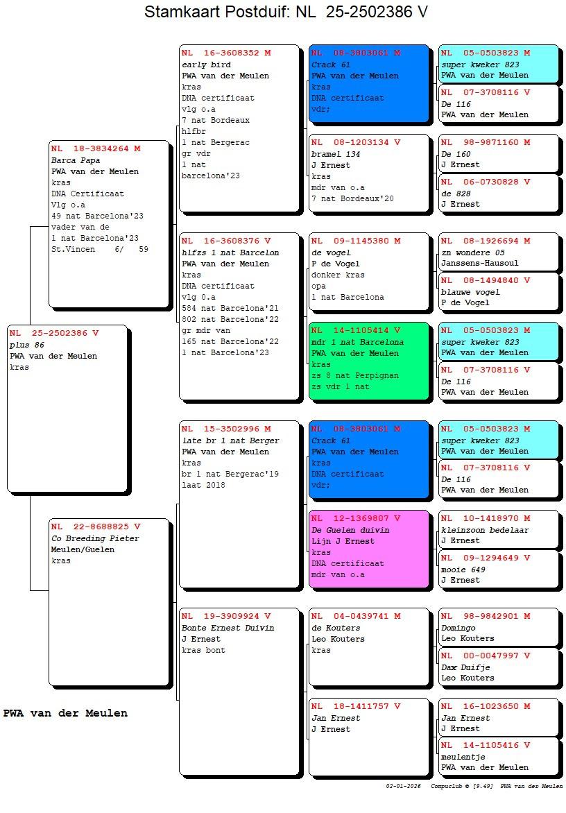 Halfsister (same father) 1st National Barcelona ’23 ! Daughter “BARCA PAPA” (father “BARCA BONT 760” 1st National Barcelona ’23) x granddaughter superbreeder “CRACK 61” !