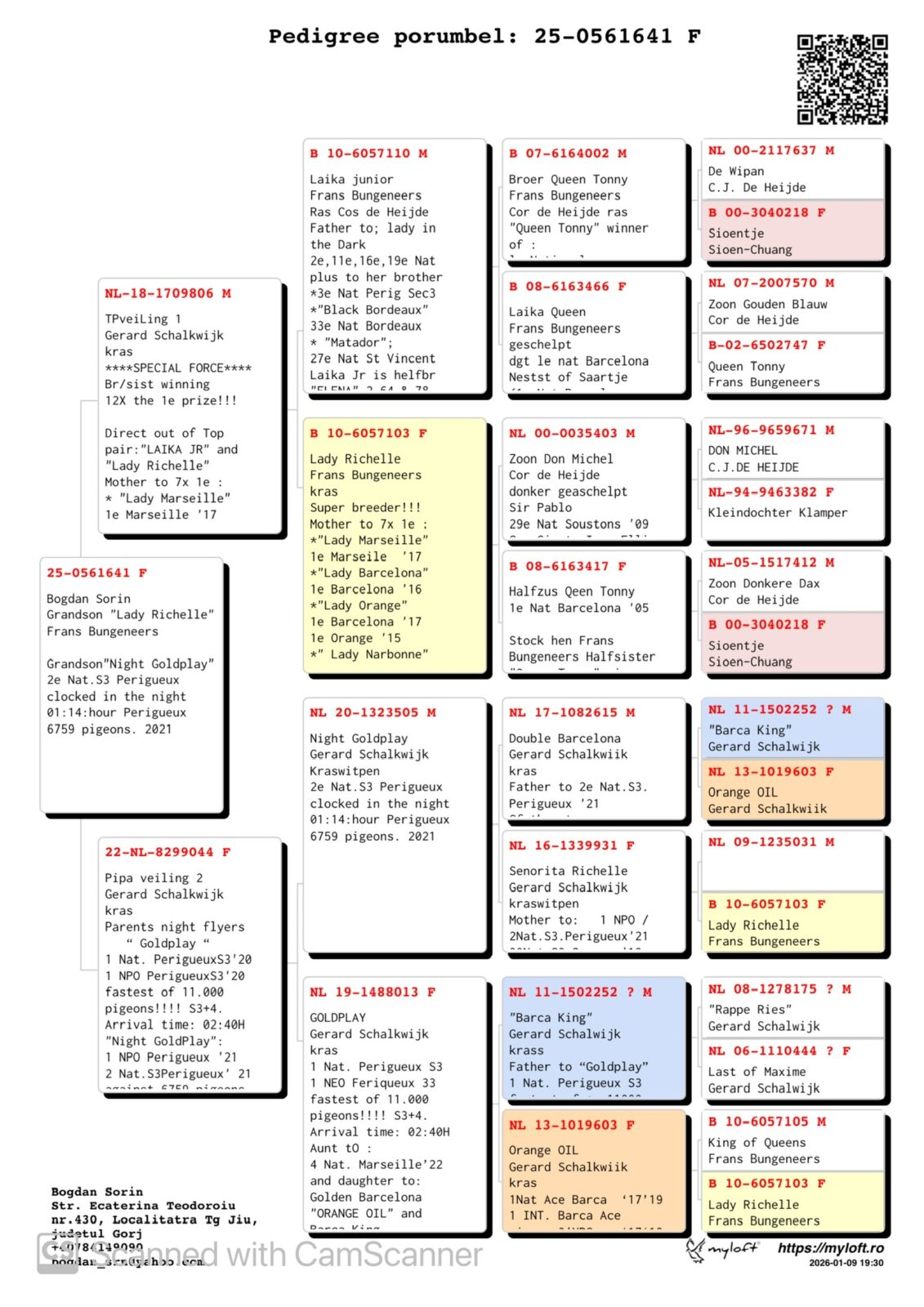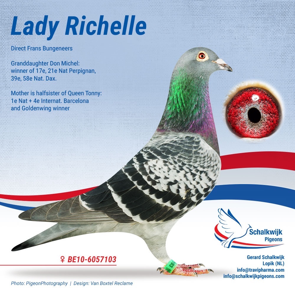 Daughter “GOLDPLAY” 1st National Perigueux (02.40 in the night) x “NIGHT GOLDPLAY” 2nd National Perigueux (01.14 in the night) paired to son “LADY RICHELLE” (mother 7x 1st !!) x “LAIKA JUNIOR” (father “LADY IN THE DARK” Best European Ace (F) Extreme Marathon ’17) !!