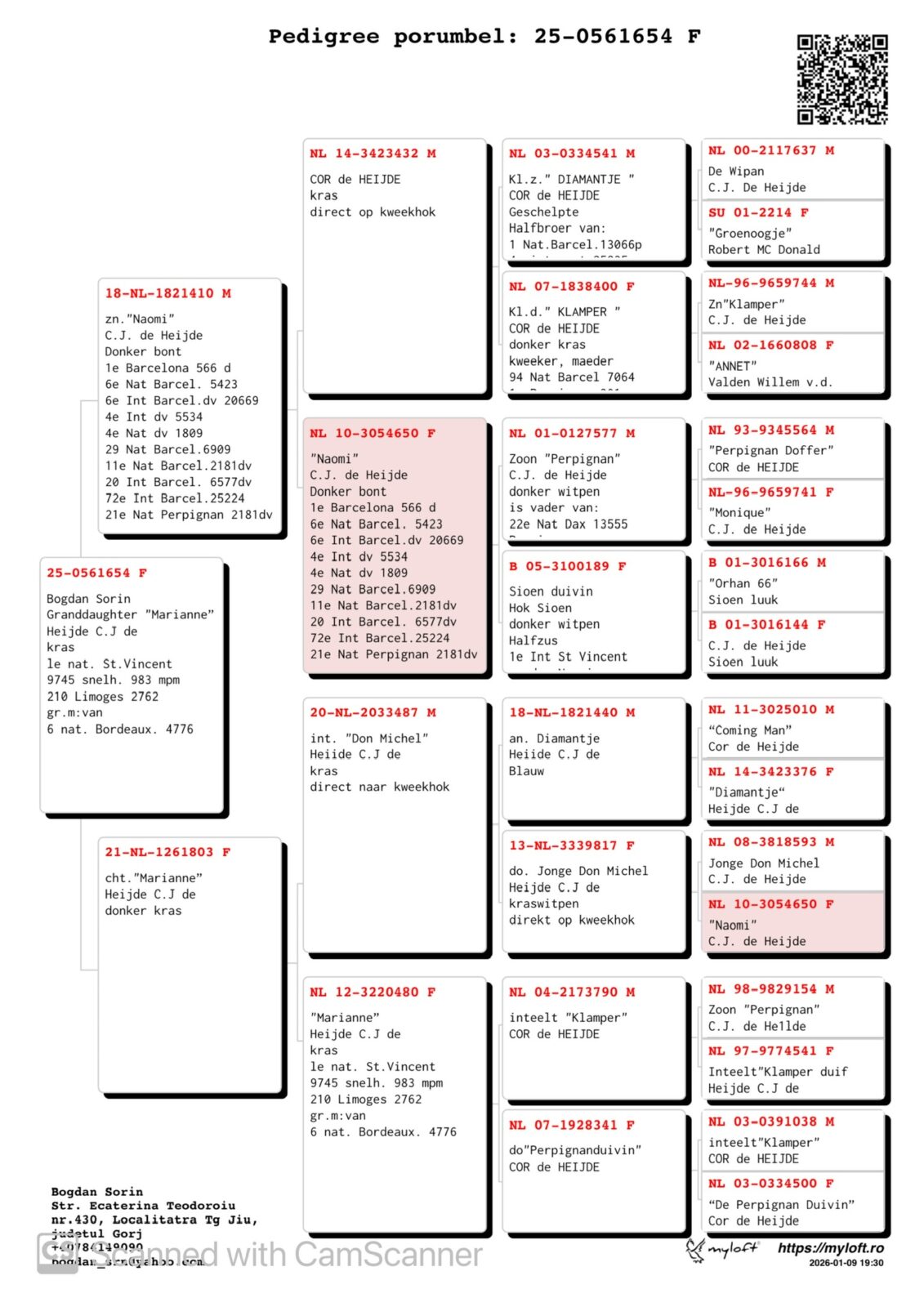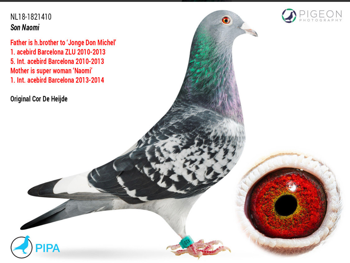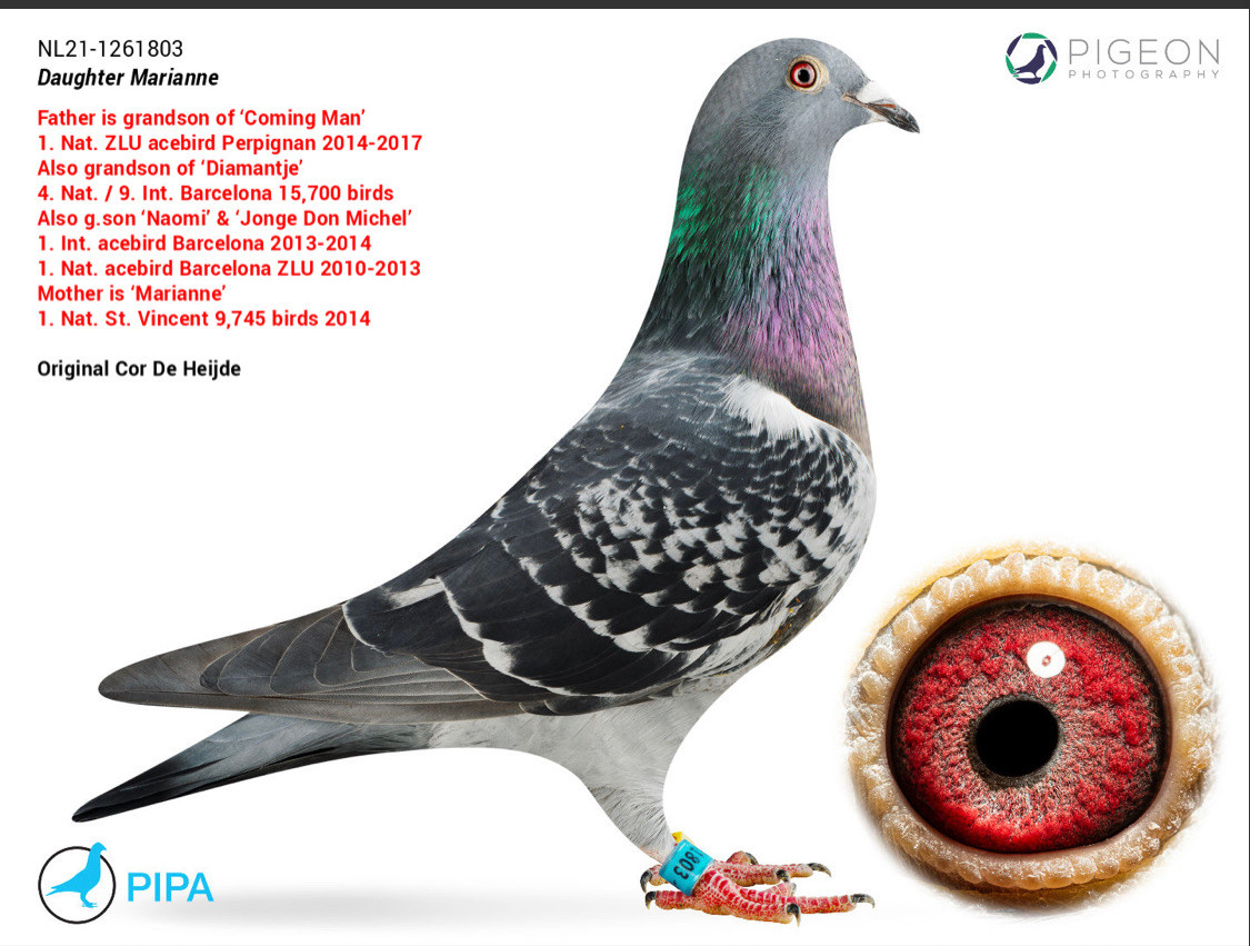 Daughter “MARIANNE” 1st National St Vincent x son “NAOMI” 1st International Ace Barcelona 2 yr, 6 National Barcelona, 29 National Barcelona !!