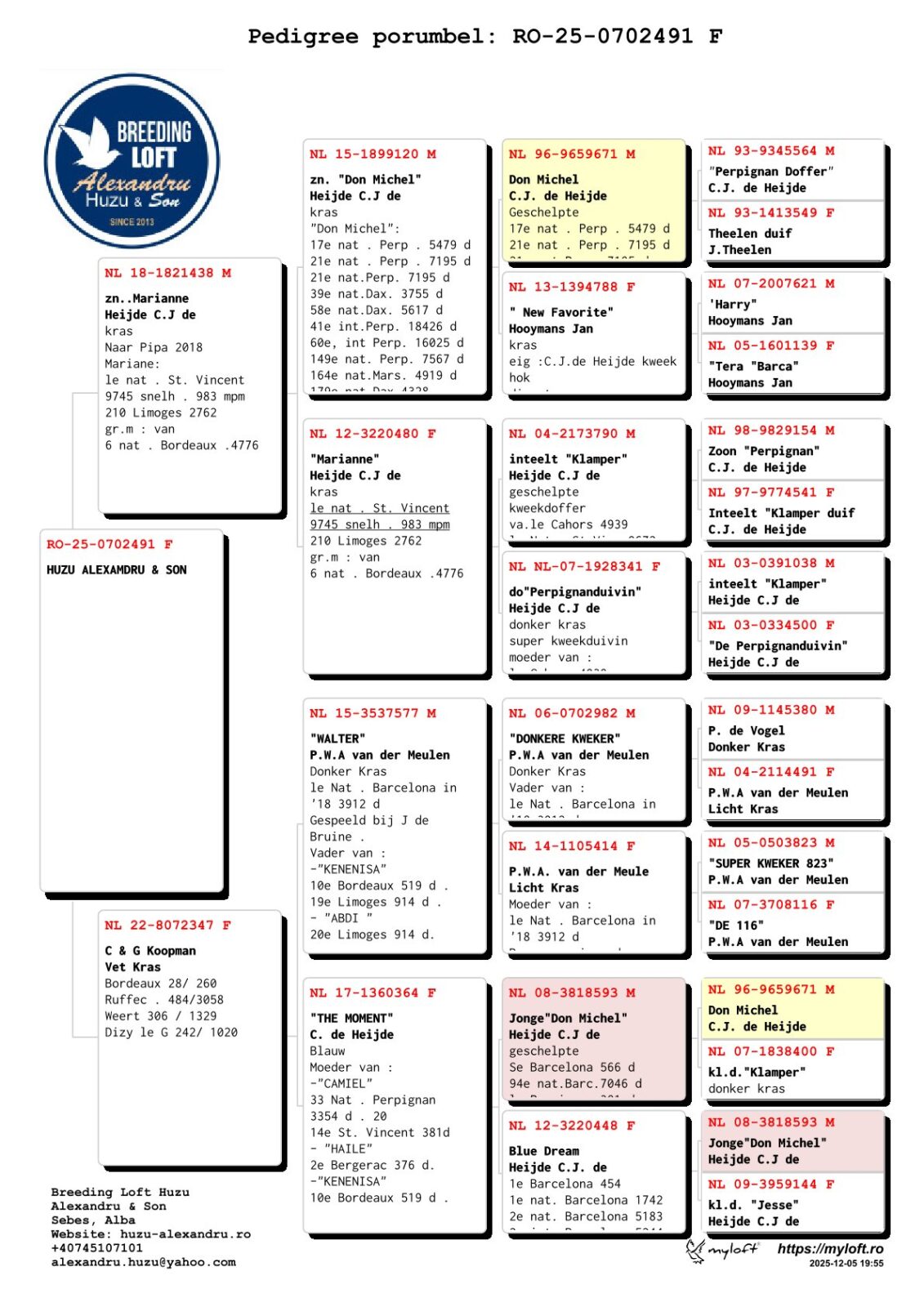 Daughter “WALTER” 1st National Barcelona PWA van der Meulen x son “MARIANNE” C.J de Heijde 1st National St Vincent x son “DON MICHEL” !!!