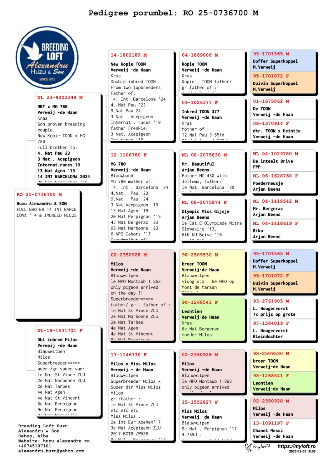 Son superbreeder “MG780” (sister “MG430”) x daughter “MILOS” !!!