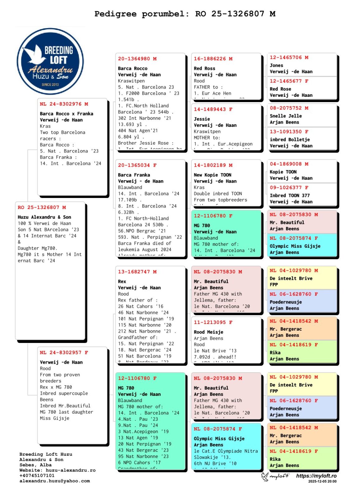Son “BARCA ROCCO” 5th National Barcelona ’23 x “BARCA FRANKA” 14th International Barcelona ’24 paired to a daughter of “MG780” (sister “MG430”) mother of the 3rd International Ace Extreme Marathon “FRENKIE”, 4 National Pau ’23, 9 National Pau ’24, 13 National Agen ZLU, 14 International Barcelona ’24 !!!