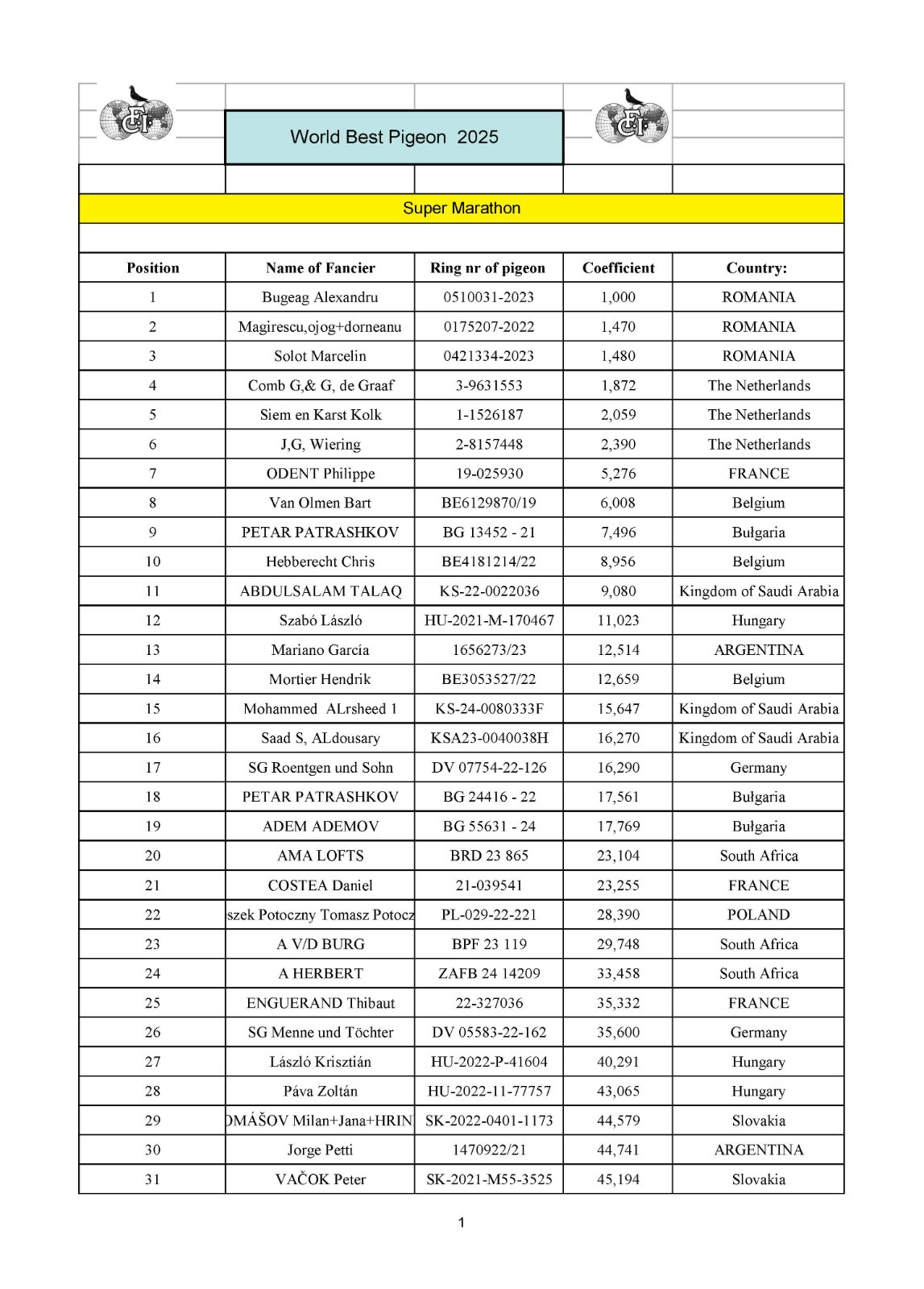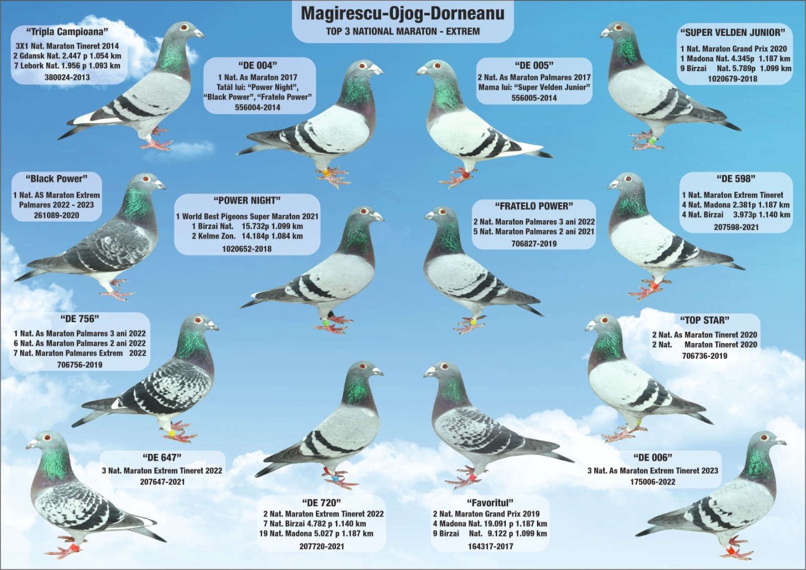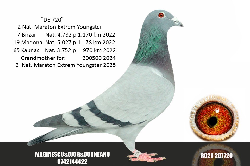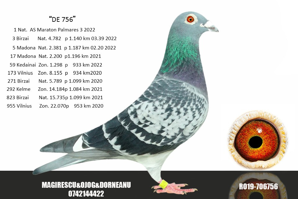 Super exclusive son of the “756” 1st National Ace Marathon 3 yr, 9 prizes! o.a. 3 National Birzai 4.782 (clocked 03.39), 5 National Madona 2.381 (clocked 02.20) x the “720” 2nd National Ace Extreme Marathon Yearlings o.a. 7 National Birzai 4.782, 19 National Madona 5.027, 65 National Kaunas 3.752.