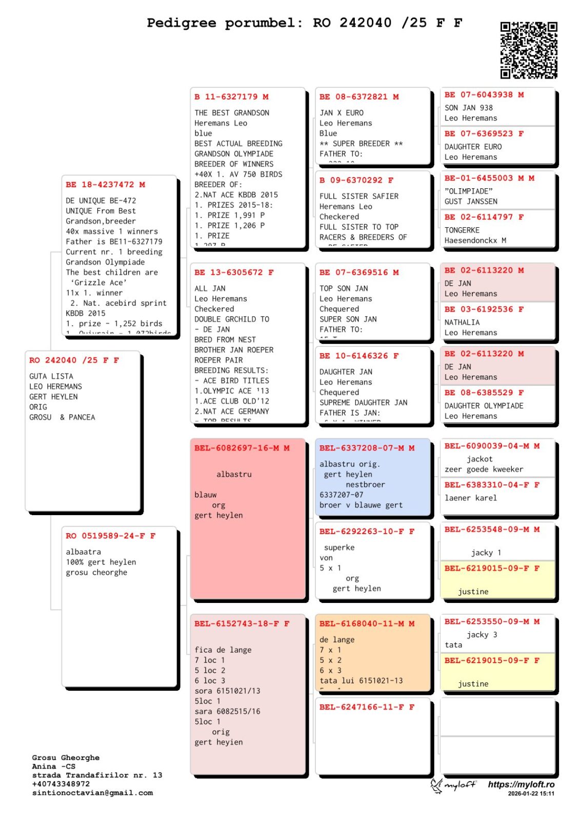Granddaughter “DE LANGE” 7x 1, 5x 2, 6x 3 (Gert Heylen) x “DE UNIQUE” (100% Leo Heremans), very exclusive son of “THE BEST GRANDSON” x granddaughter “DE JAN” !