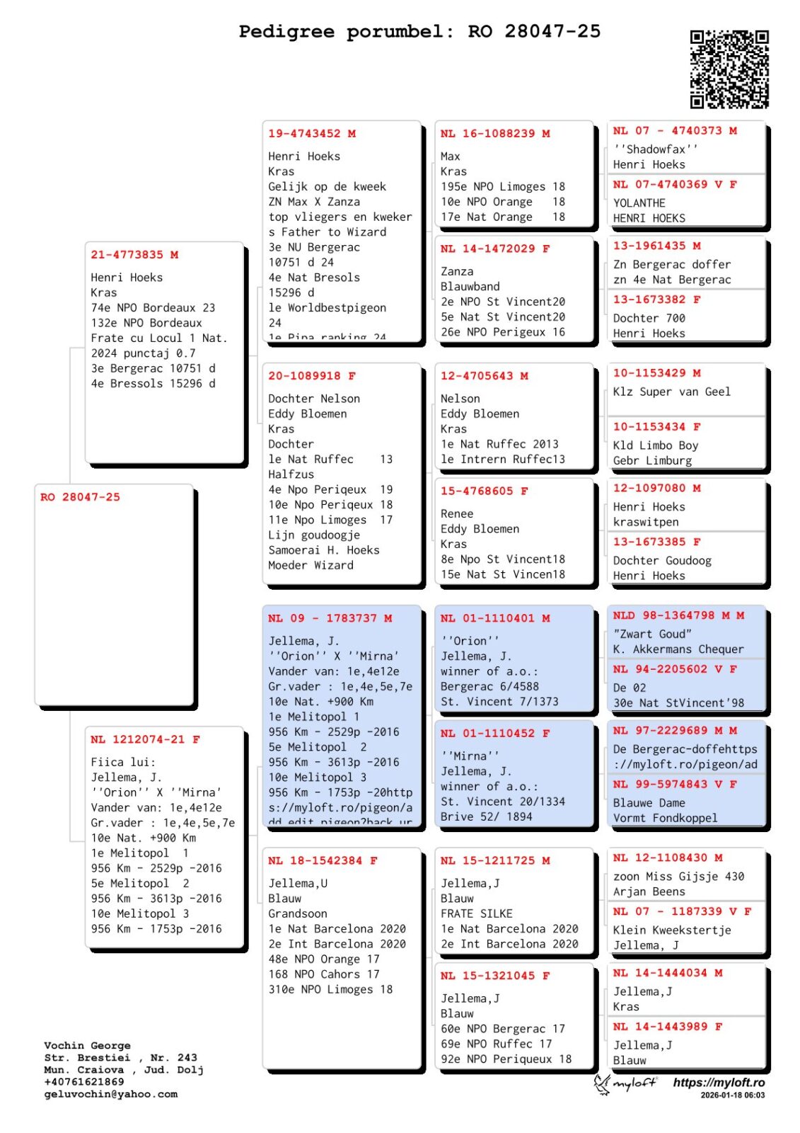 Son of a full brother of “WIZARD” 1st World’s Best Pigeon Super Marathon ’24 Henri Hoeks x daughter “ORION” Jelle Jellema !!