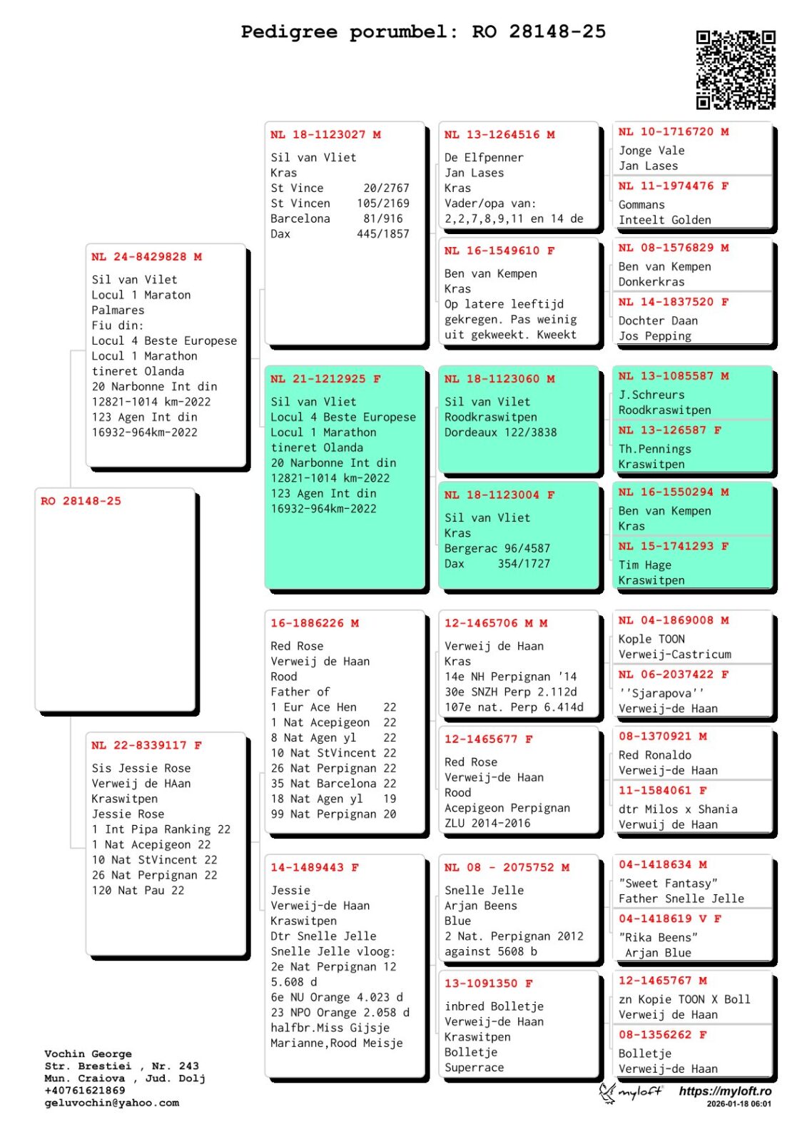 Sister “JESSIE ROSE” 1st International Ace Extreme Marathon Pipa ranking & 1st National Ace ZLU x son of “DE 925” Sil van Vliet 1st National Ace ZLU, 4th International Ace Extreme Marathon Pipa ranking !!